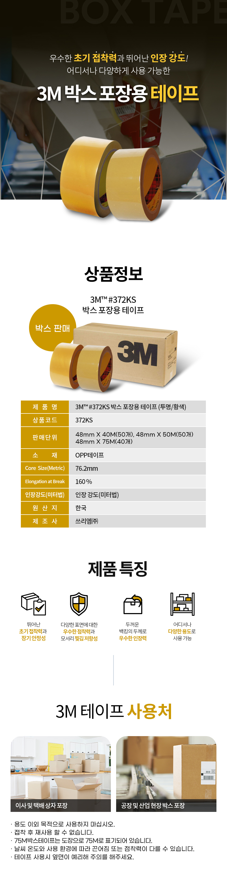 3M 372KS OPP 박스테이프 1박스(50개입) 48X40M 투명 황색