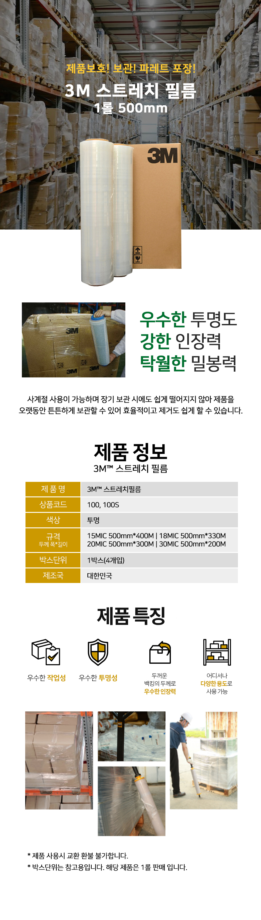 3M 스트레치 필름 1롤 15MIC 500mmX400M 포장 랩 비닐 공업용 파레트 파렛트