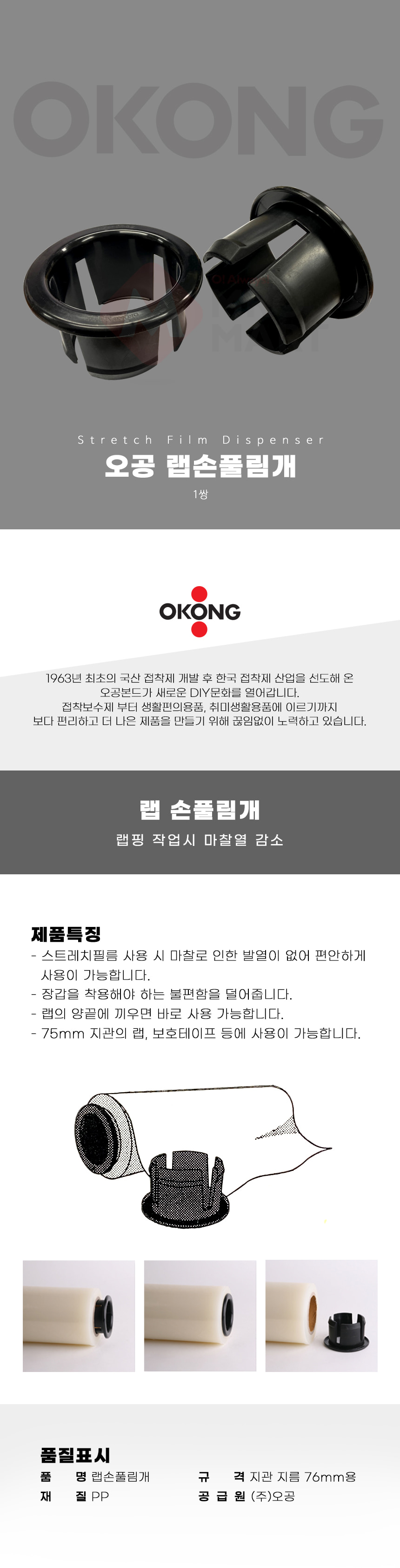 오공 랩 손풀림개 1쌍 공업용 스트레치 필름 보호 테이프
