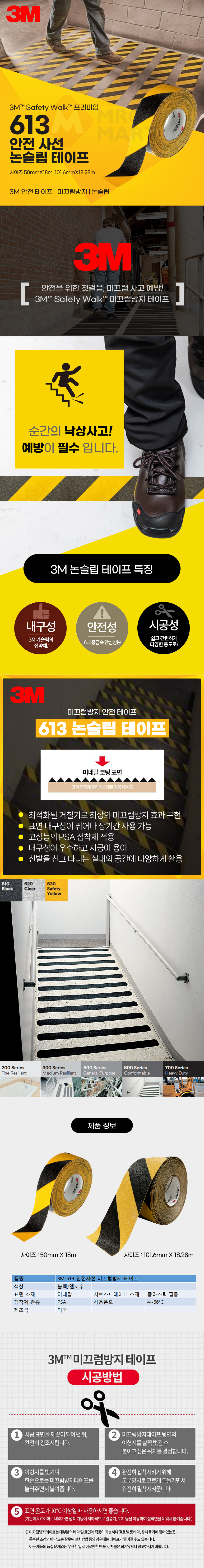 3M 613 안전사선 논슬립 미끄럼방지 테이프 101.6mmX18.28M