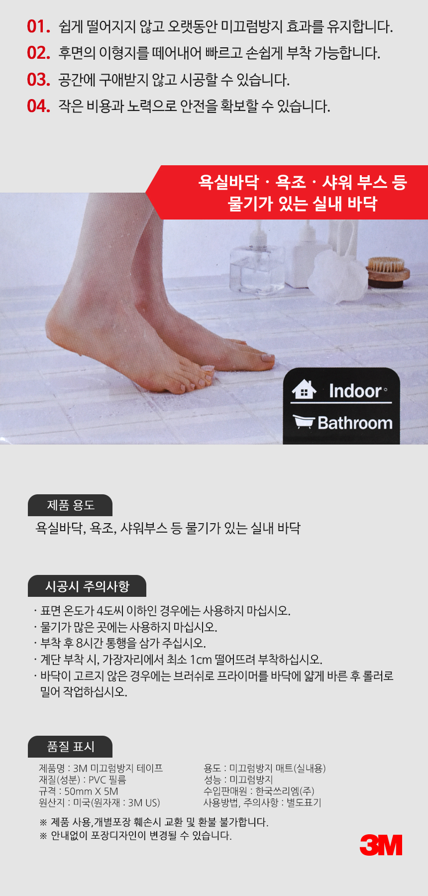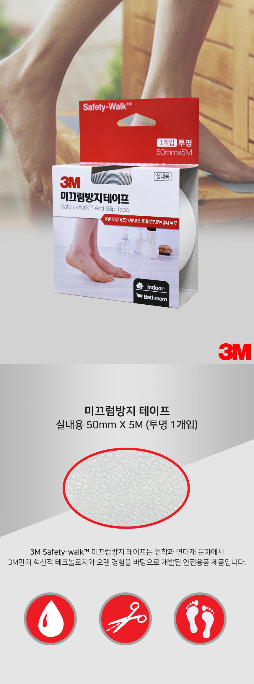 3M 논슬립 미끄럼방지 테이프 실내용 1개입 투명 50mmX5M