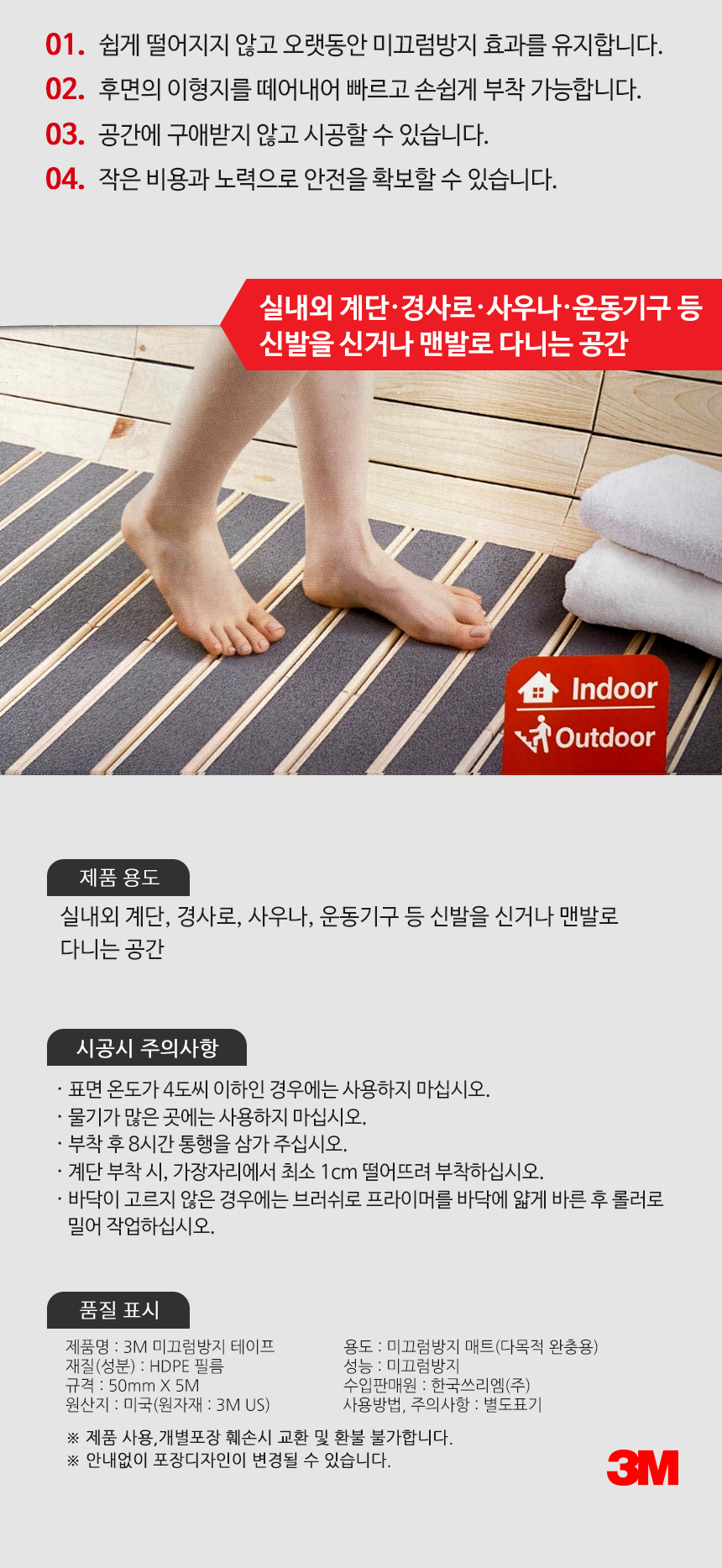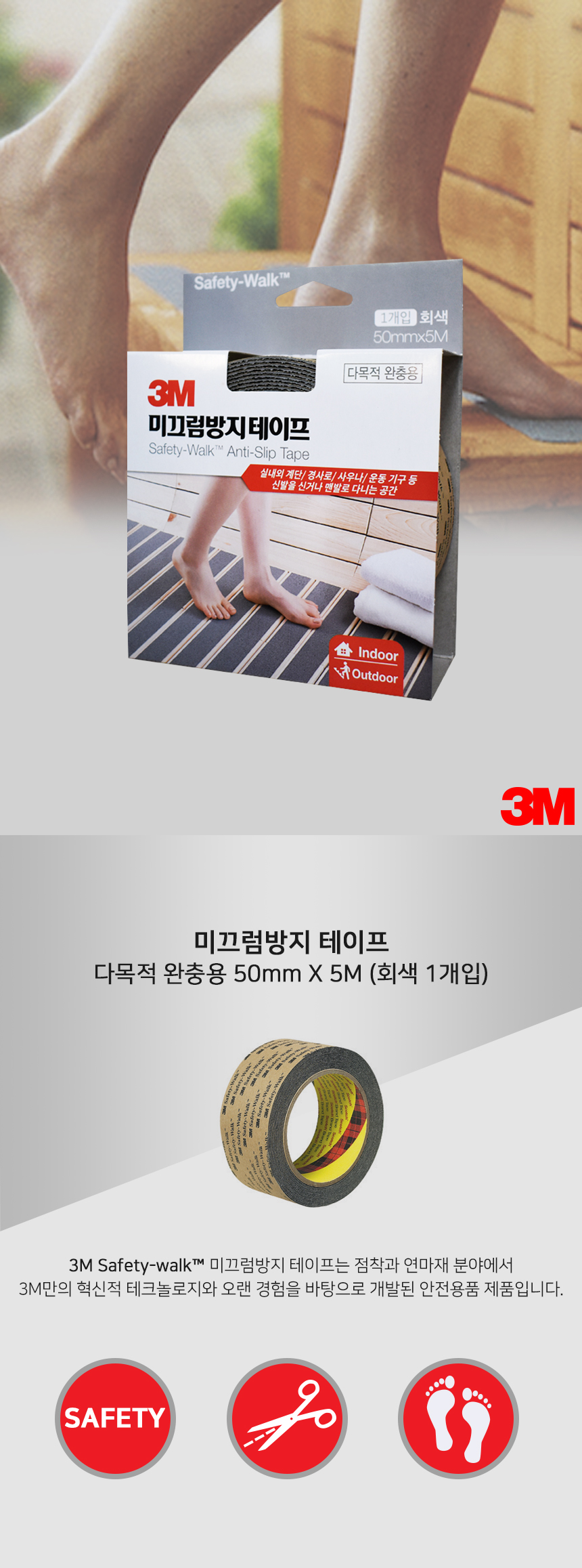 3M 논슬립 미끄럼방지 테이프 다목적 완충용 1개입 회색 50mmX5M