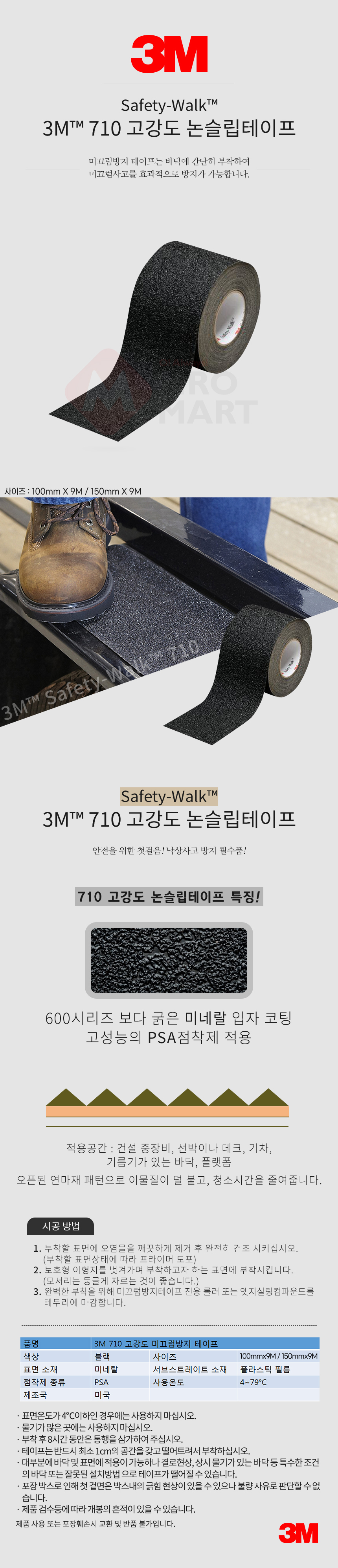 3M 710 고강도 논슬립 미끄럼방지 테이프 100mmX9M 계단 바닥