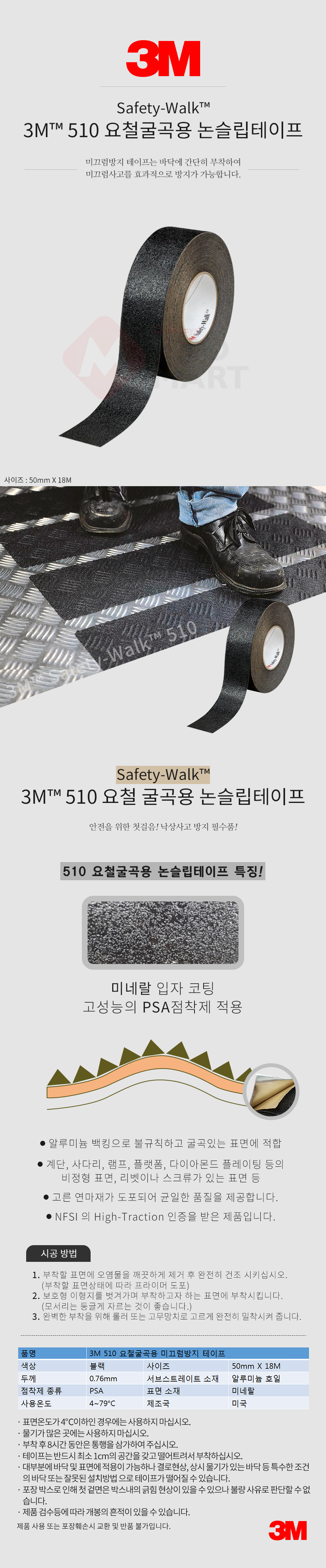3M 510 요철 굴곡용 논슬립 미끄럼방지 테이프 50mmX18M