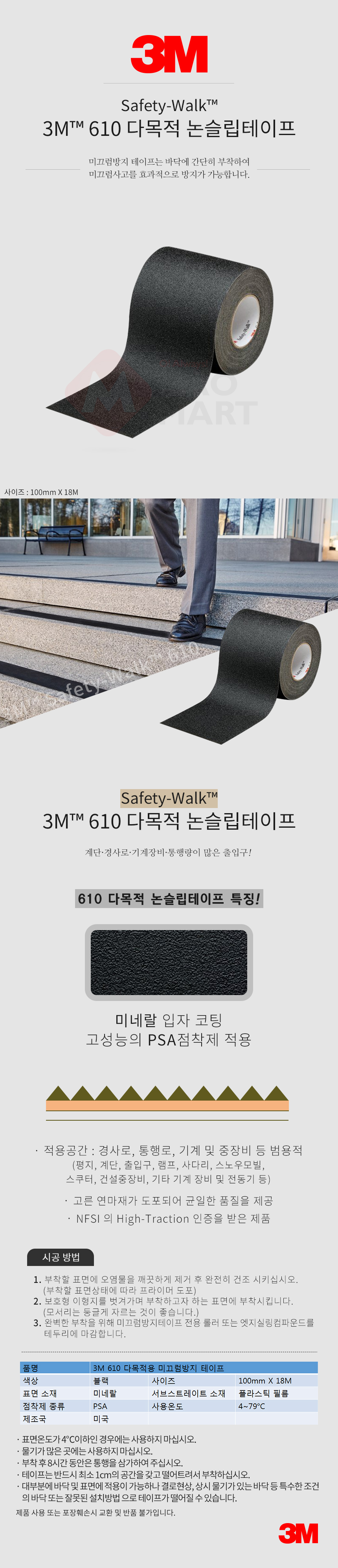 3M 610 다목적 논슬립 미끄럼방지 테이프 100mmX18M