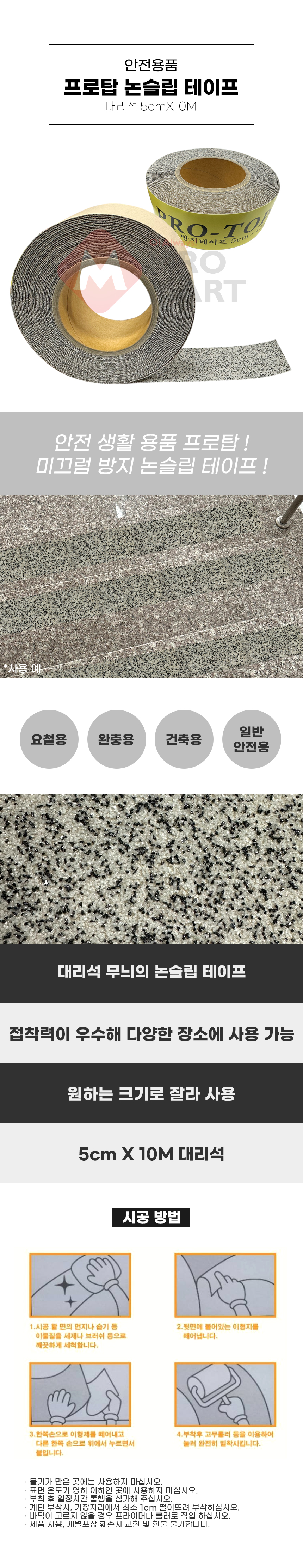 프로탑 대리석 논슬립 미끄럼방지 테이프 5cmX10M 실외용 계단 경사 안전
