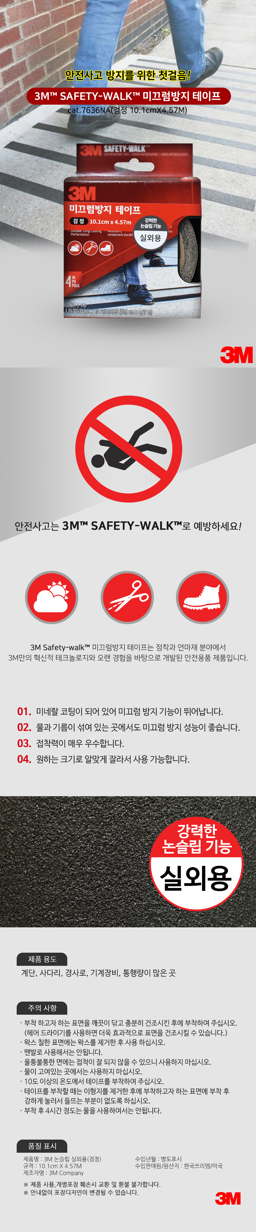 3M 7636 논슬립 미끄럼방지 테이프 10.1cmX4.57M 실외용 롤형 검정