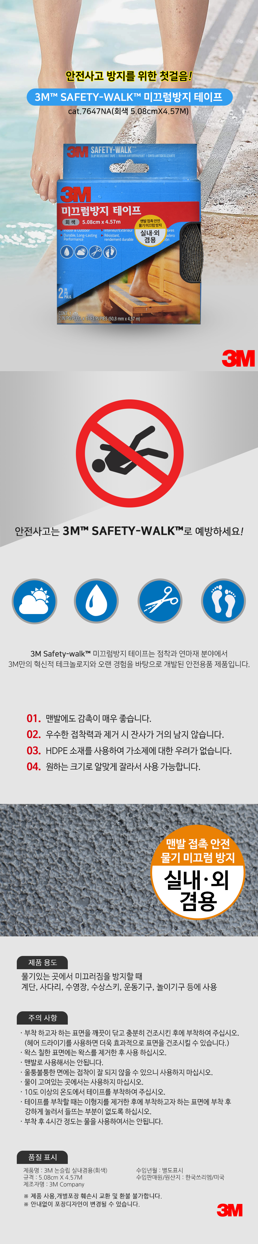 3M 7647 논슬립 미끄럼방지 테이프 5.08cmX4.57M 실내외 롤형 회색