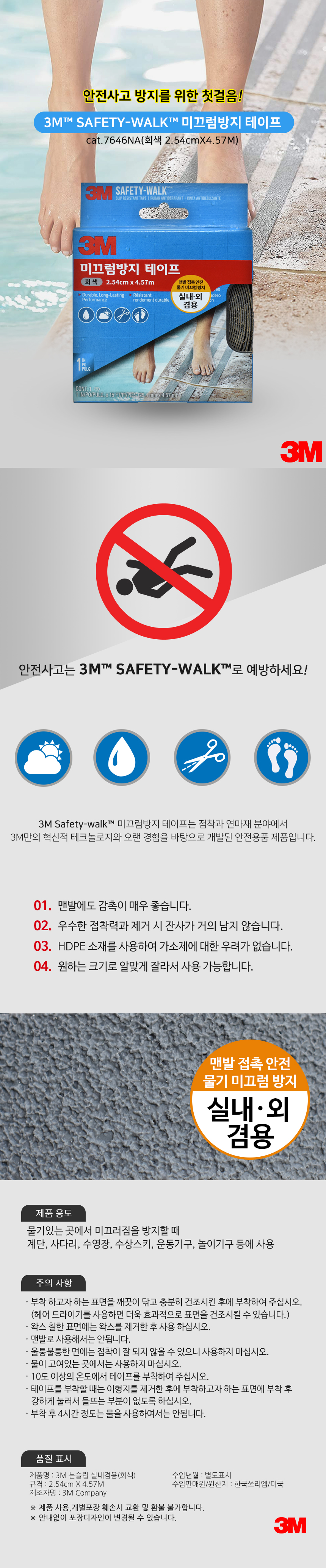 3M 7646 논슬립 미끄럼방지 테이프 2.54cmX4.57M 실내외 롤형 회색