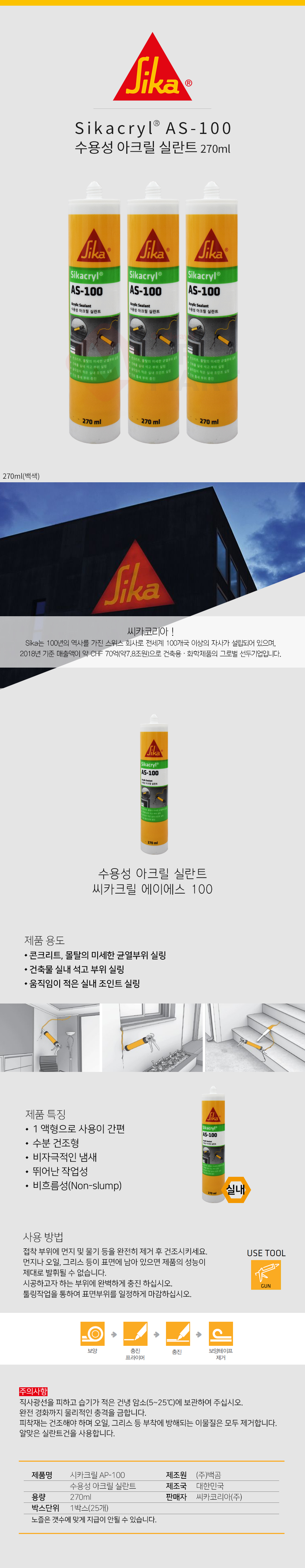 씨카 AS100 270ml 수용성 아크릴 실리콘 실란트