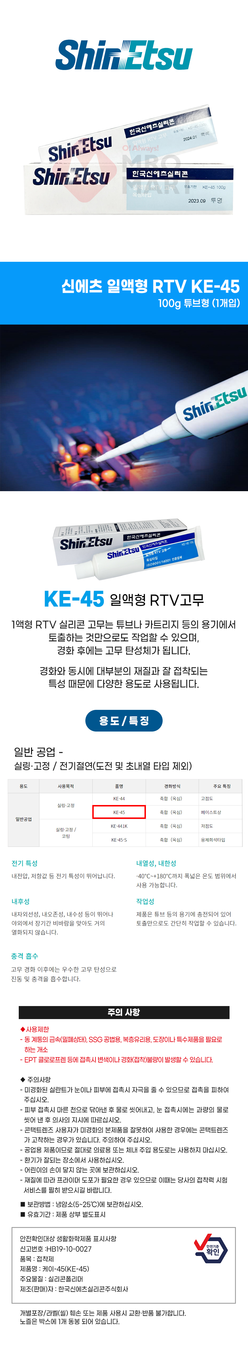 신에츠 RTV 실리콘 튜브형 100g RTV KE 45 일액형 고무 전기 절연 고점도 실링 접착
