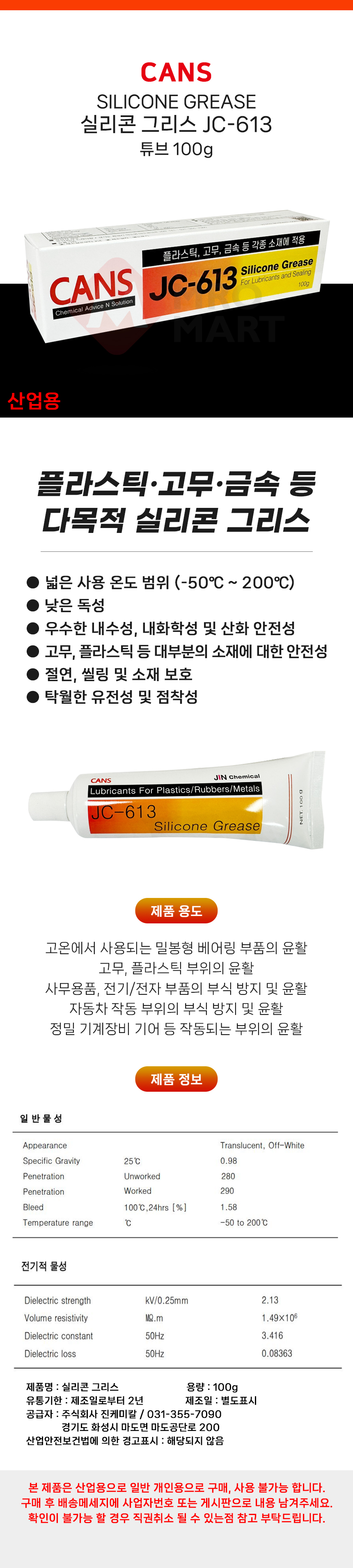 CANS 실리콘 그리스 JC-613 튜브 100g 구리스 다목적 고무 플라스틱 금속
