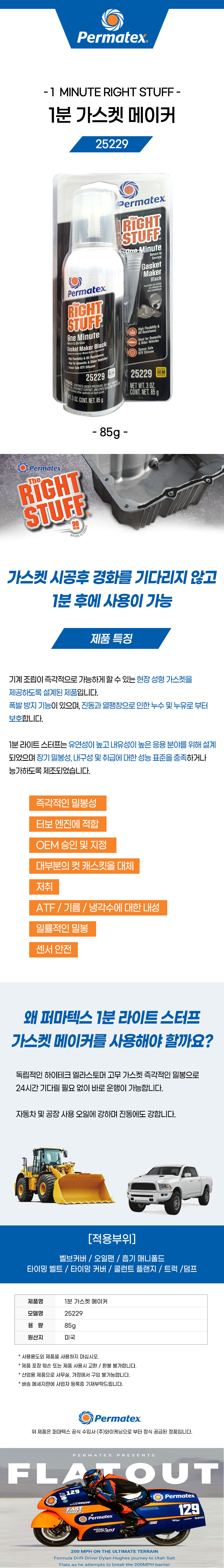 퍼마텍스 25229 라이트 스터프 1분 가스켓 메이커 경화 RTV 실리콘 실란트 내유성 실링 85g