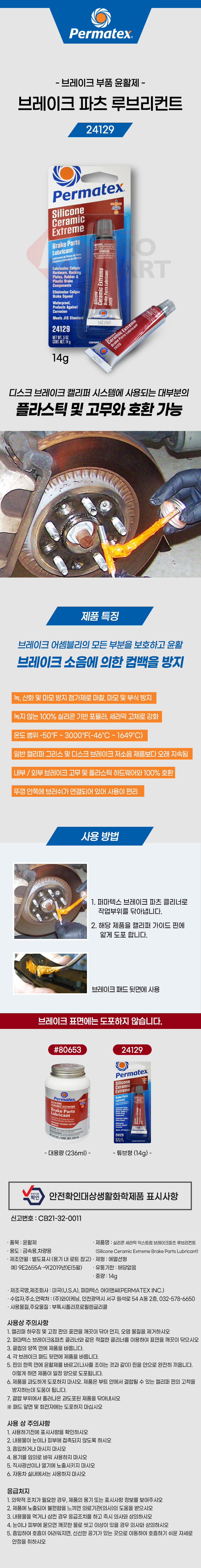 퍼마텍스 24129 브레이크 파츠 실리콘 구리스 부품 윤활제 튜브형 14g