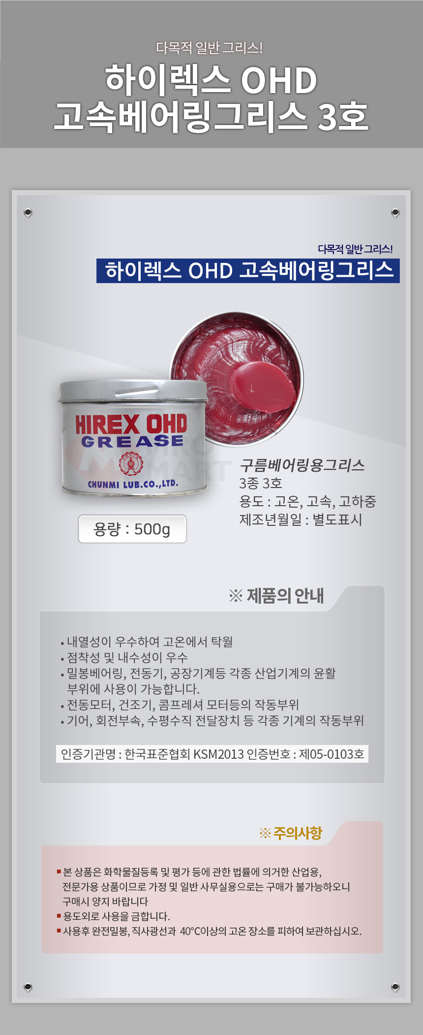하이렉스 OHD 고속 베어링 그리스 3호 구름 베어링용 구리스 고온 고속 고하중 적색