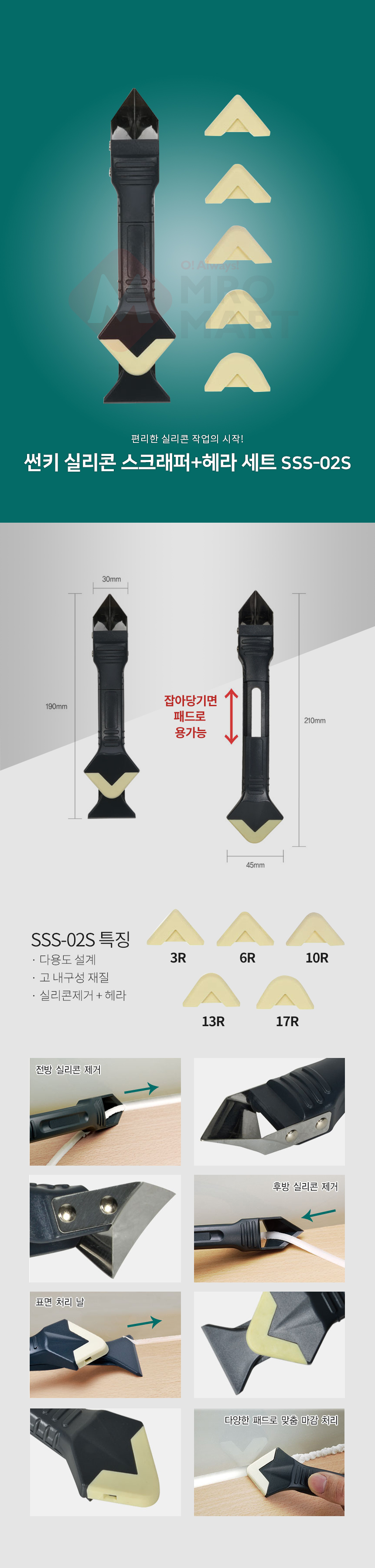 썬키 실리콘 스크래퍼 헤라 세트 SSS-02S 만능 헤라 타일 줄눈 제거 마감 작업