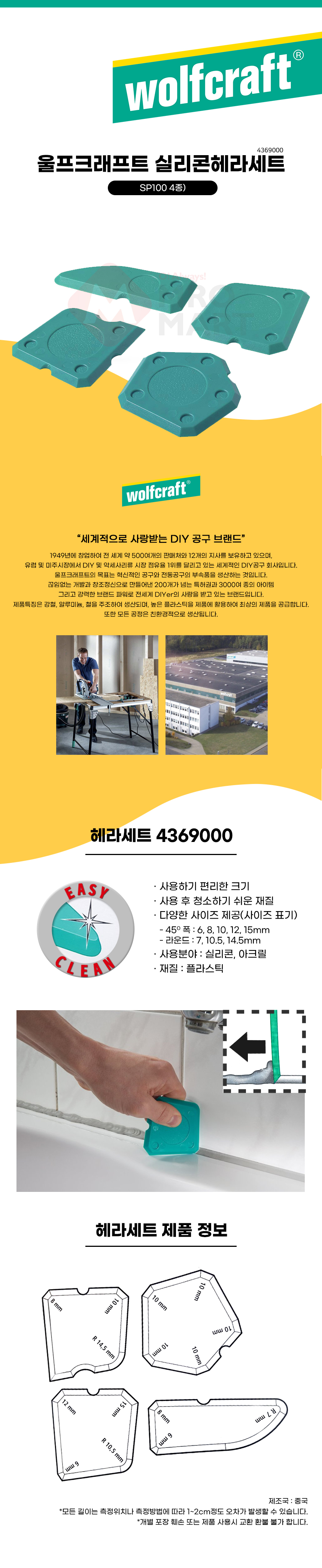 울프크래프트 실리콘 헤라 세트 SP100 4369000 실란트 주걱 헤라 작업 마감 마무리 욕실 타일 몰딩