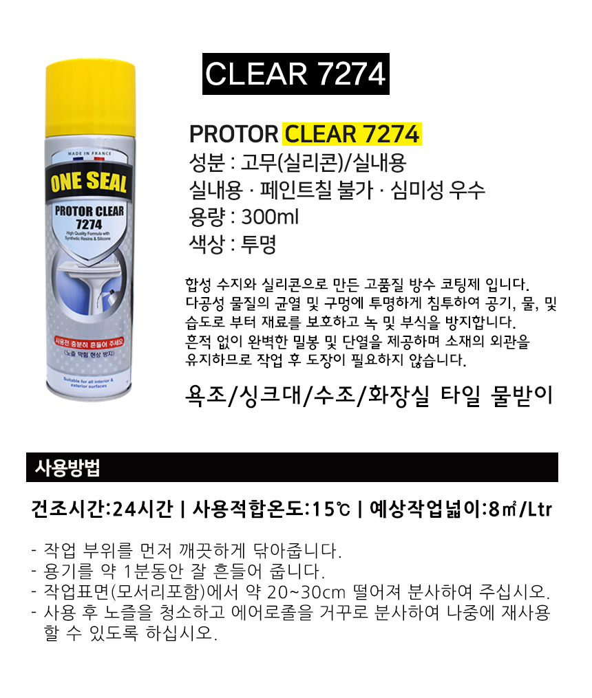 원씰 뿌리는 초강력 방수제 투명 300ml CLEAR7274 방수코팅제 실내 실외