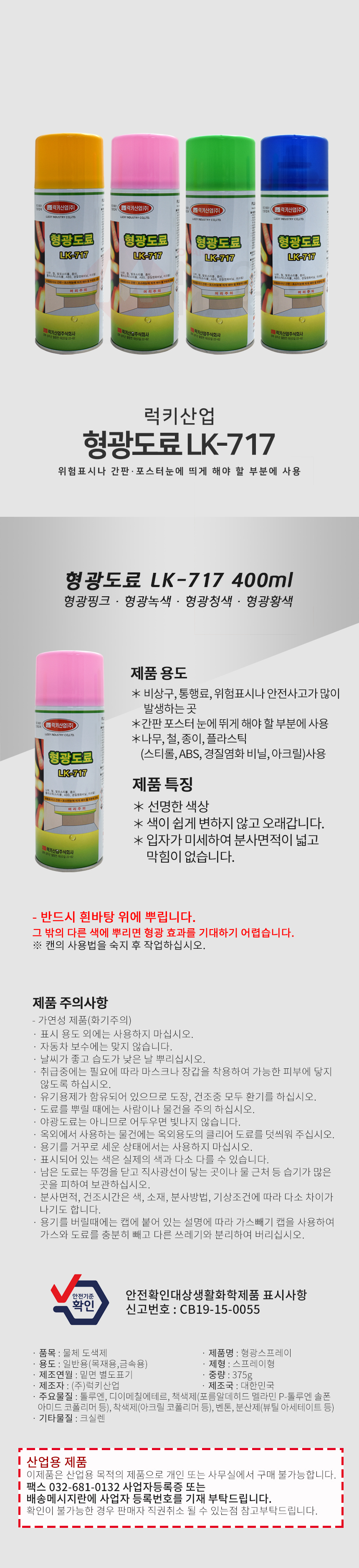 럭키산업 형광도료LK-717 형광 핑크 녹색 청색 황색 락카 스프레이