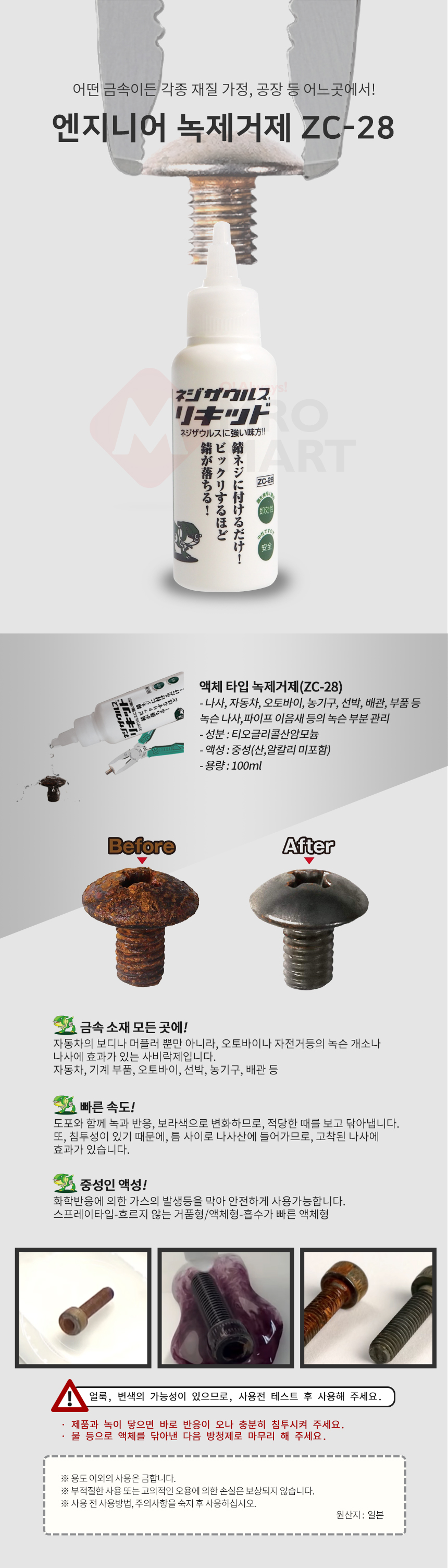 엔지니어 녹제거제 100ml 액체형 ZC-28 부식 차량 금속 나사 부품 파이프