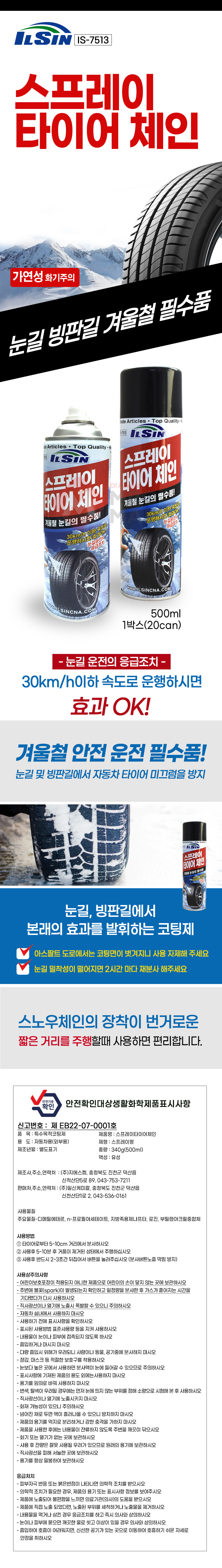 일신 스프레이 체인 500ml 겨울철 필수 빙판길 눈길 스노우 차동차 차량용품 IS-7513