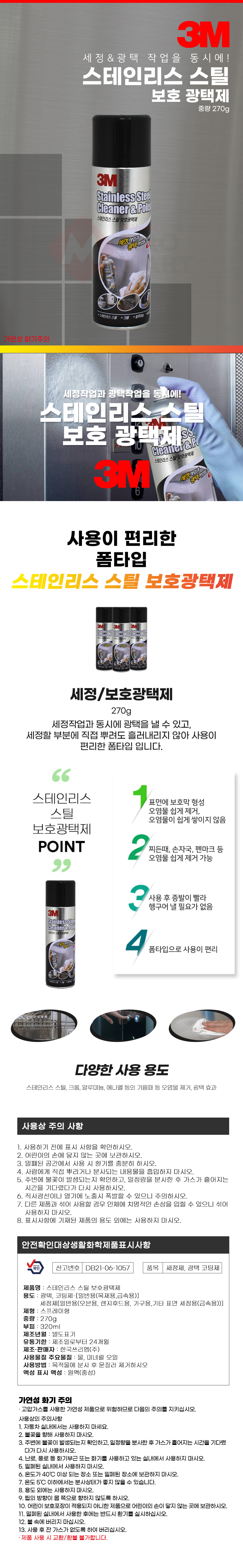 3M 스테인리스 스틸 클리너 폴리쉬 270g 보호 광택제 세정제 기름때 찌든때 주방 싱크대 후드 엘레베이터