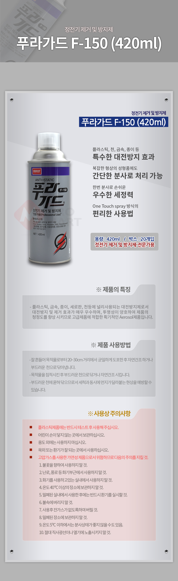 남방 푸라가드 F-150 정전기 제거 및 방지제 420ml