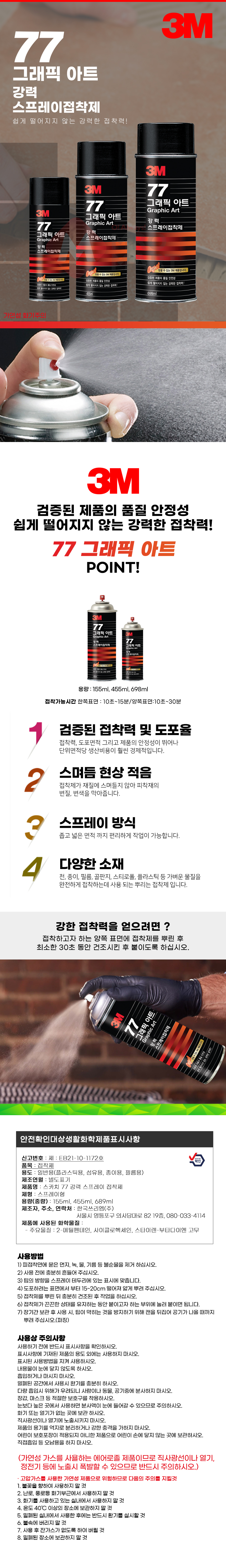 3M 77 그래픽아트 강력 스프레이 접착제 698ml 24oz