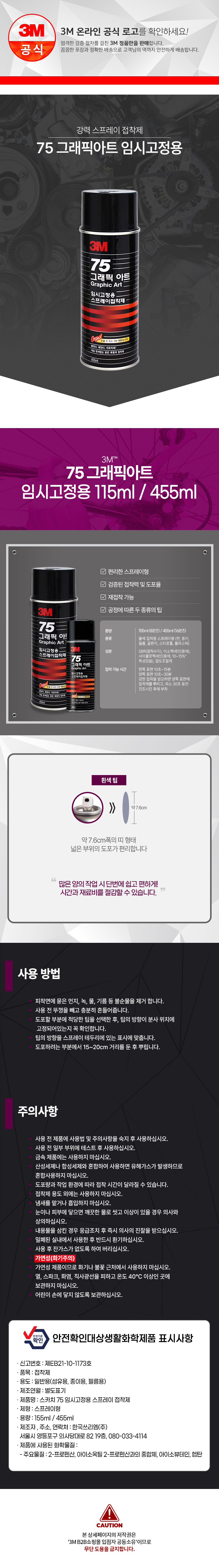 3M 75 스프레이 접착제 임시고정용 455ml 16oz