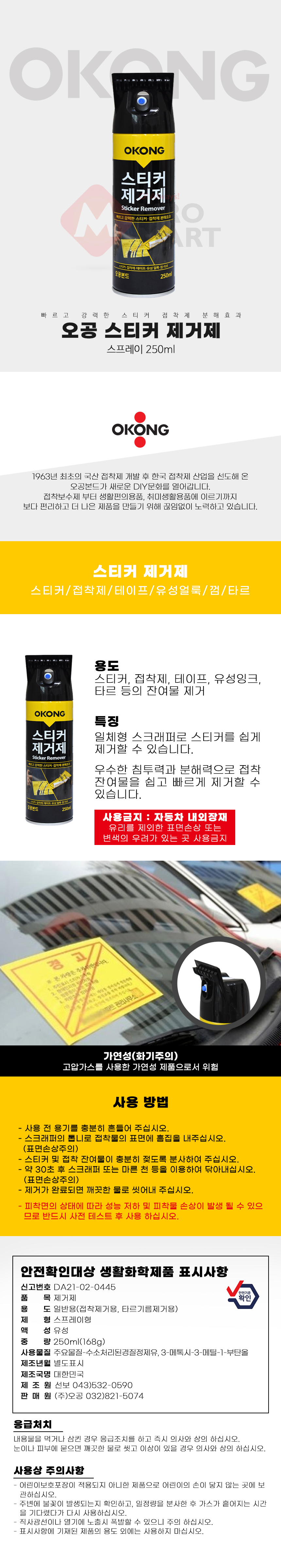 오공 스티커 제거제 250ml 테이프 접착제 스티커 유성 얼룩 껌 타르