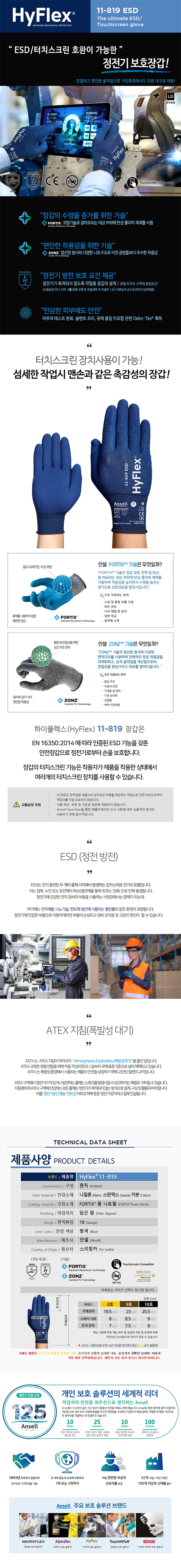 안셀 하이플렉스 11-819 1켤레 산업 안전 작업 장갑 ESD 정전기 방지 NBR코팅