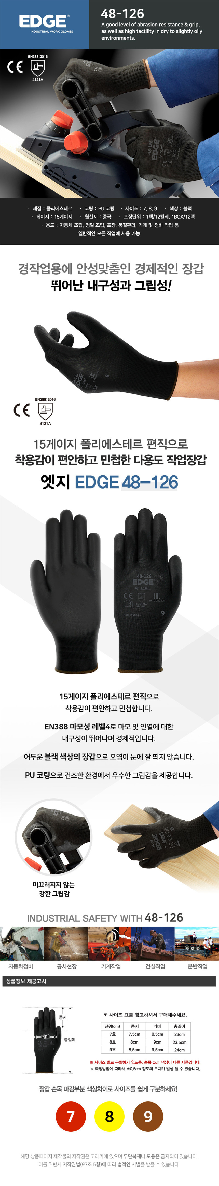 안셀 엣지 48-126 1켤레 PU코팅 산업 안전 장갑 작업 미끄럼방지