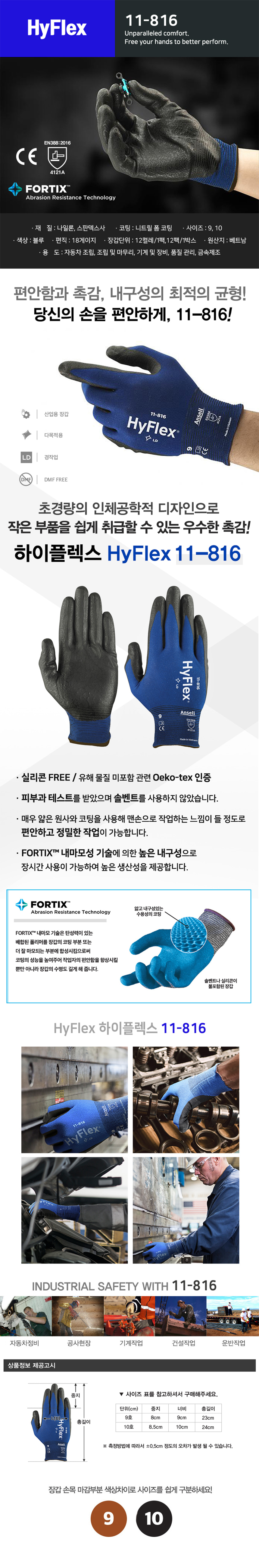 안셀 하이플렉스 그립 11-816 1켤레 산업 안전 장갑 초경량 NBR코팅 조립 작업 공장