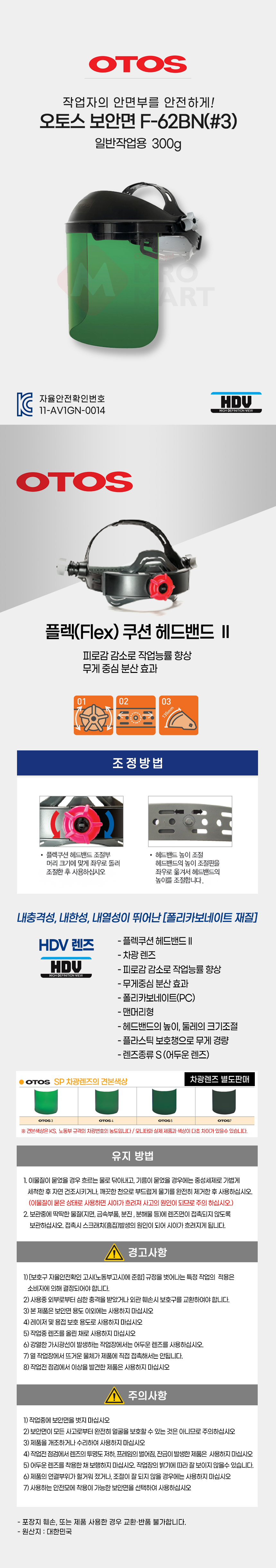 오토스 보안면 F-62BN 3 안면 보호구 용접 안전용품