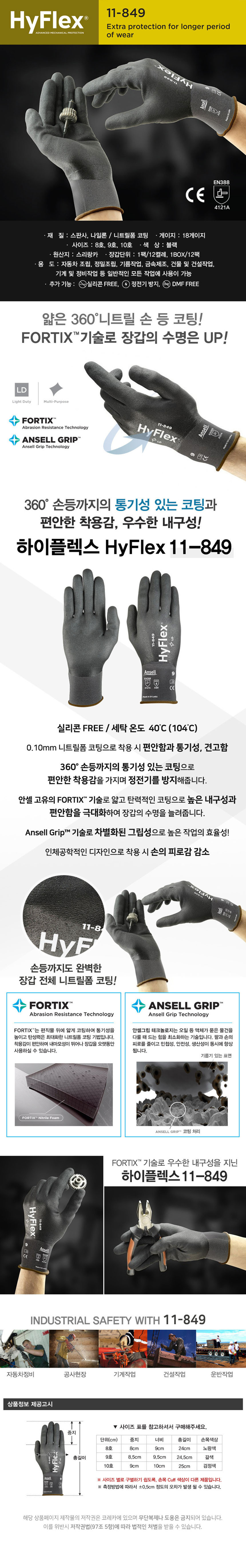 안셀 하이플렉스 11-849 작업 코팅 장갑 니트릴 폼 코팅 물류 정비