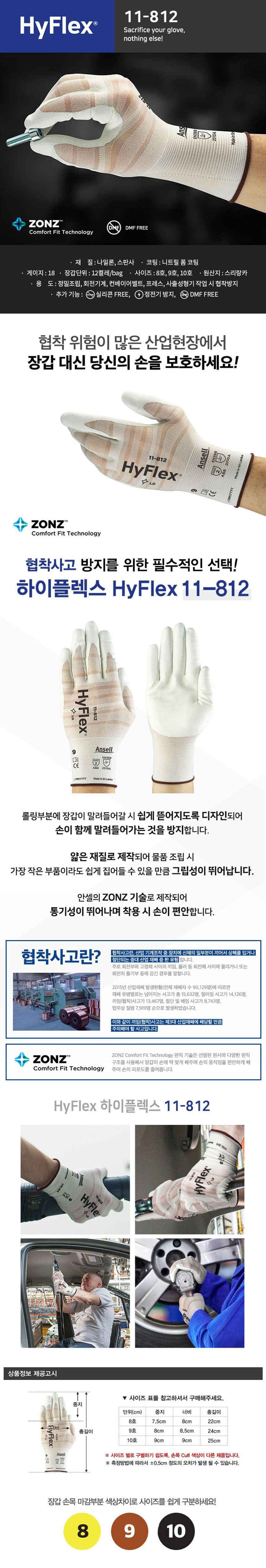 안셀 하이플렉스 11-812 작업 코팅 장갑 니트릴 폼 코팅 얇은 물류 정비