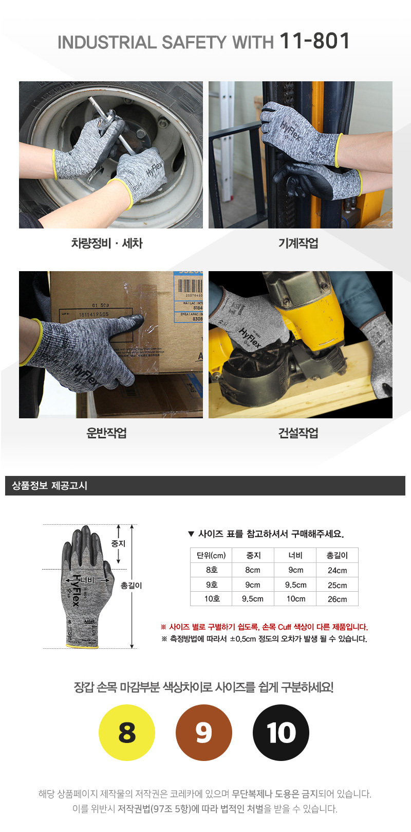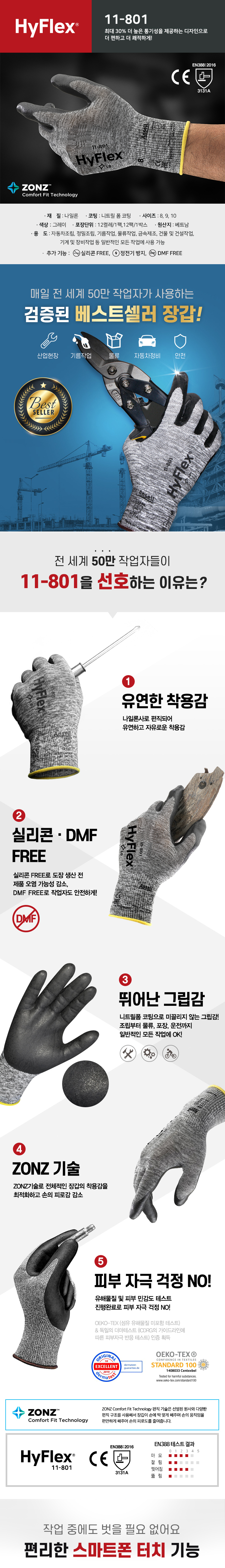 안셀 하이플렉스 11-801 NBR 코팅 장갑 터치 가능 나일론 작업 물류 정비