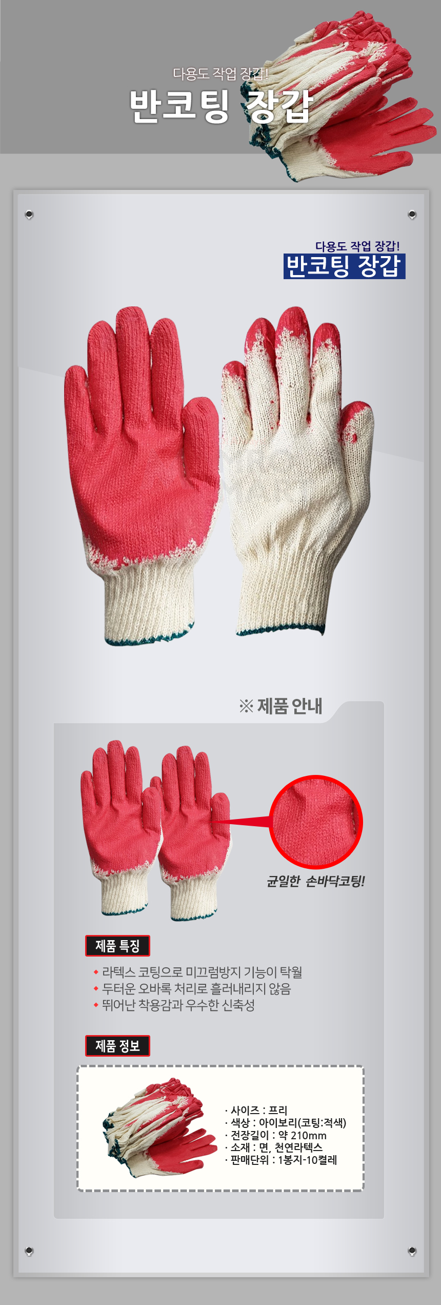반코팅장갑/안전보호장갑/미끄럼장갑/작업장갑/적색