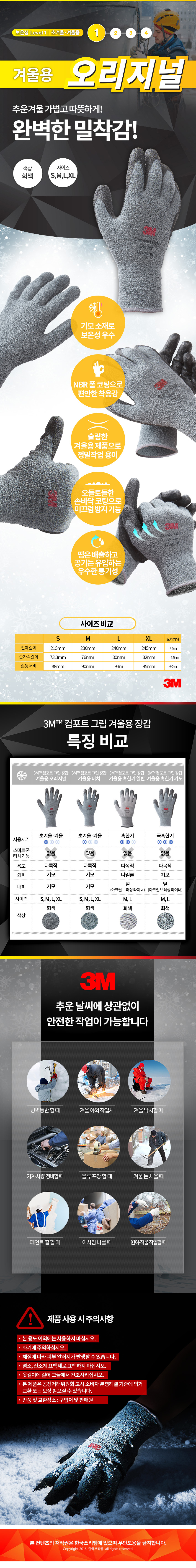 3M 장갑 컴포트그립 겨울용 오리지널 기모 방한 보온