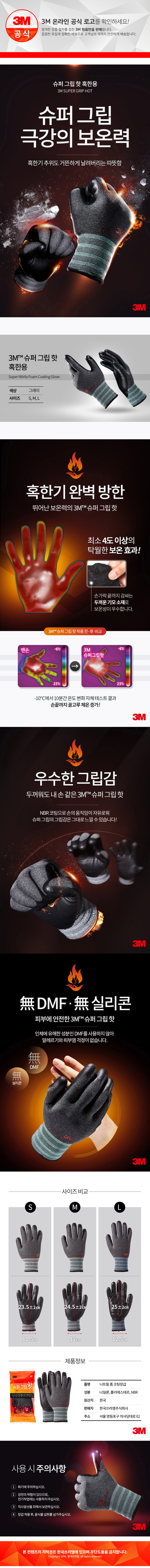 3M 슈퍼그립핫 코팅 겨울 작업 기모 털 장갑