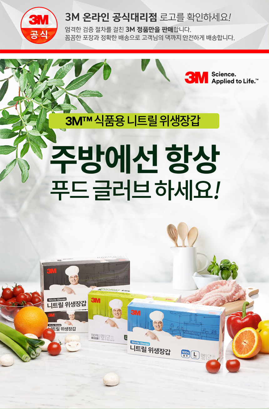 3M 니트릴 위생 장갑 블랙 100매 조리 요리 미용 원예 다용도 식품용