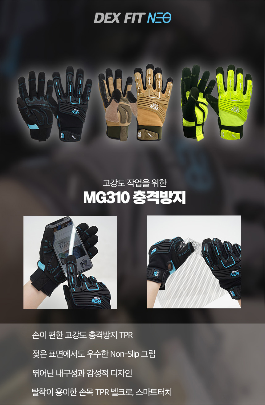 덱스핏 충격방지 장갑 MG310I 샌드 블랙 형광