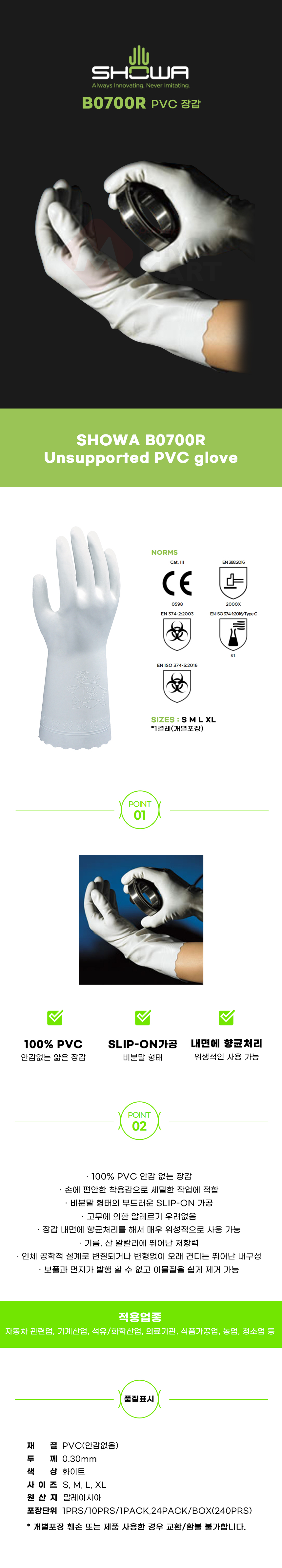 쇼와 B0700R PVC 내유 내화학 방수 코팅 장갑