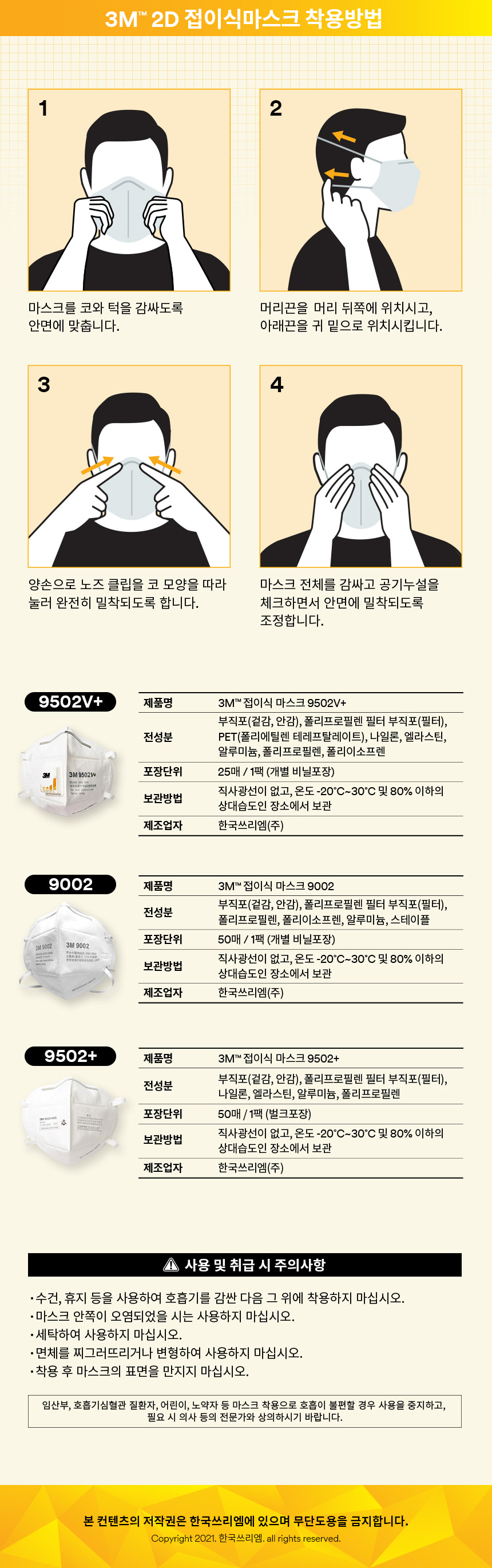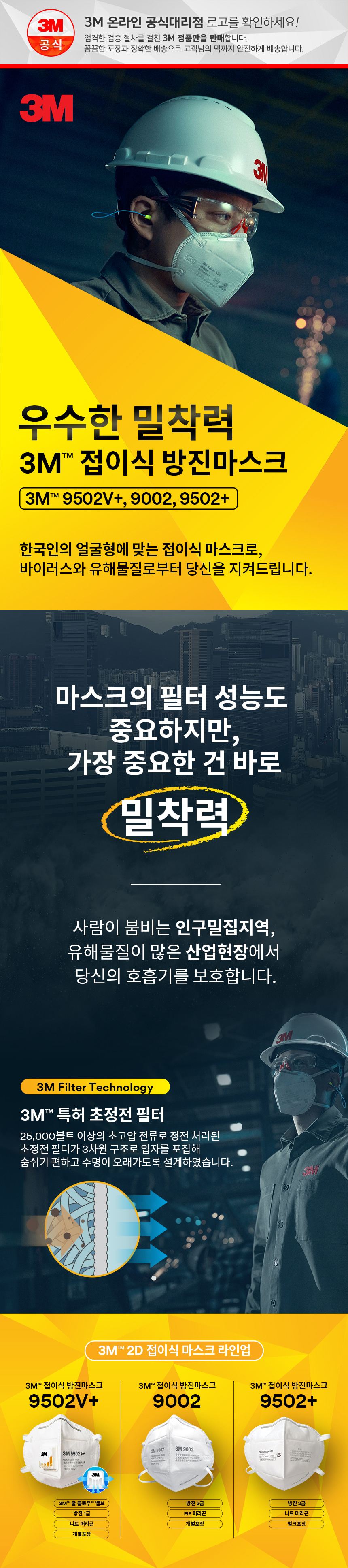 3M 접이식 방진 마스크 9502V+ 1급 KN95 1개입 개별포장