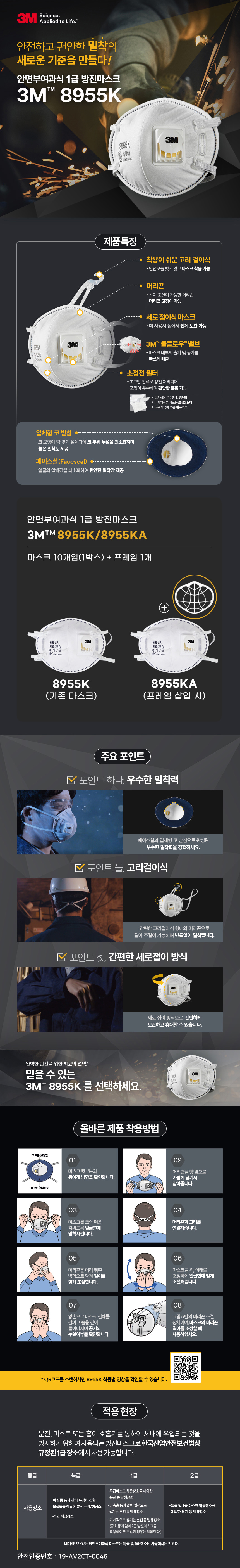 3M 안면부여과식 방진 마스크 8955K / 8955KA 방진1급 10개입 분진 미스트 용접흄 공업용 산업용