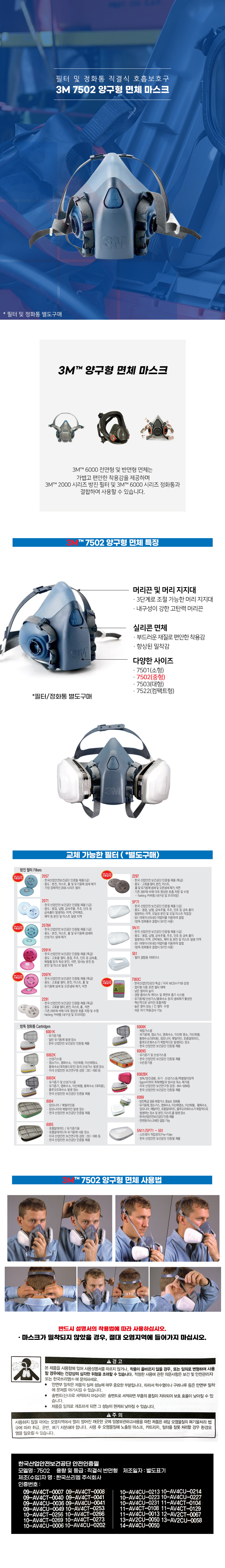 3M 7502 면체 방독 마스크 양구형 방독면 화생방 비상용 페인트 농약 분진 방진
