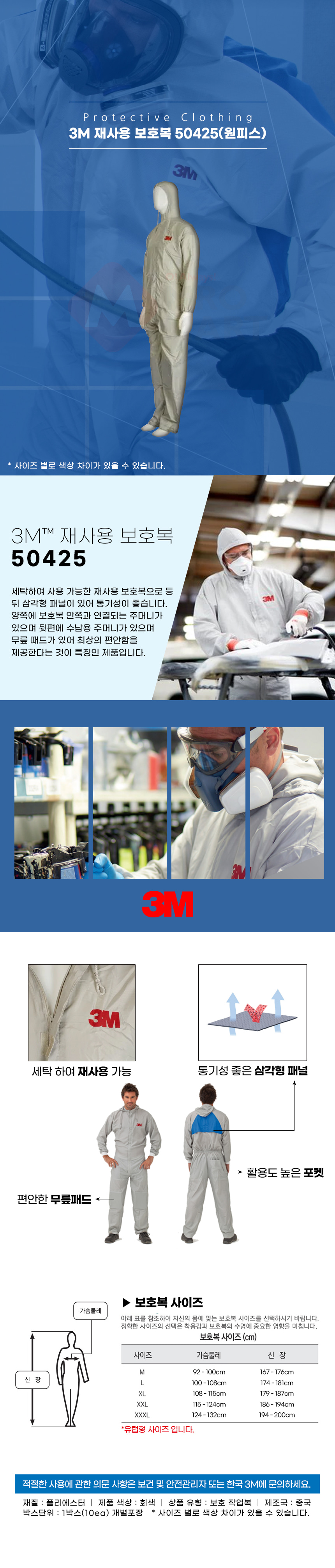 3M 방진복 50425 재사용 보호복 그레이 일체형 원피스 실험복 위생복 작업복 안전복