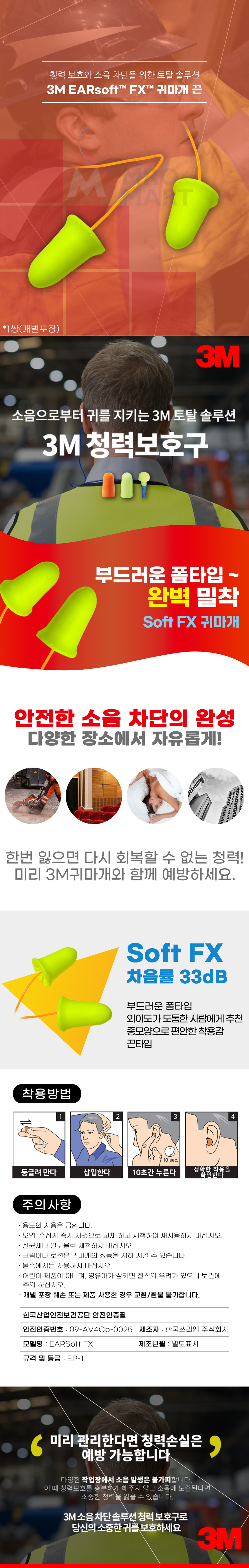 3M EARsoft FX 끈타입 귀마개 이어플러그 청력보호구 수면 소음 공부