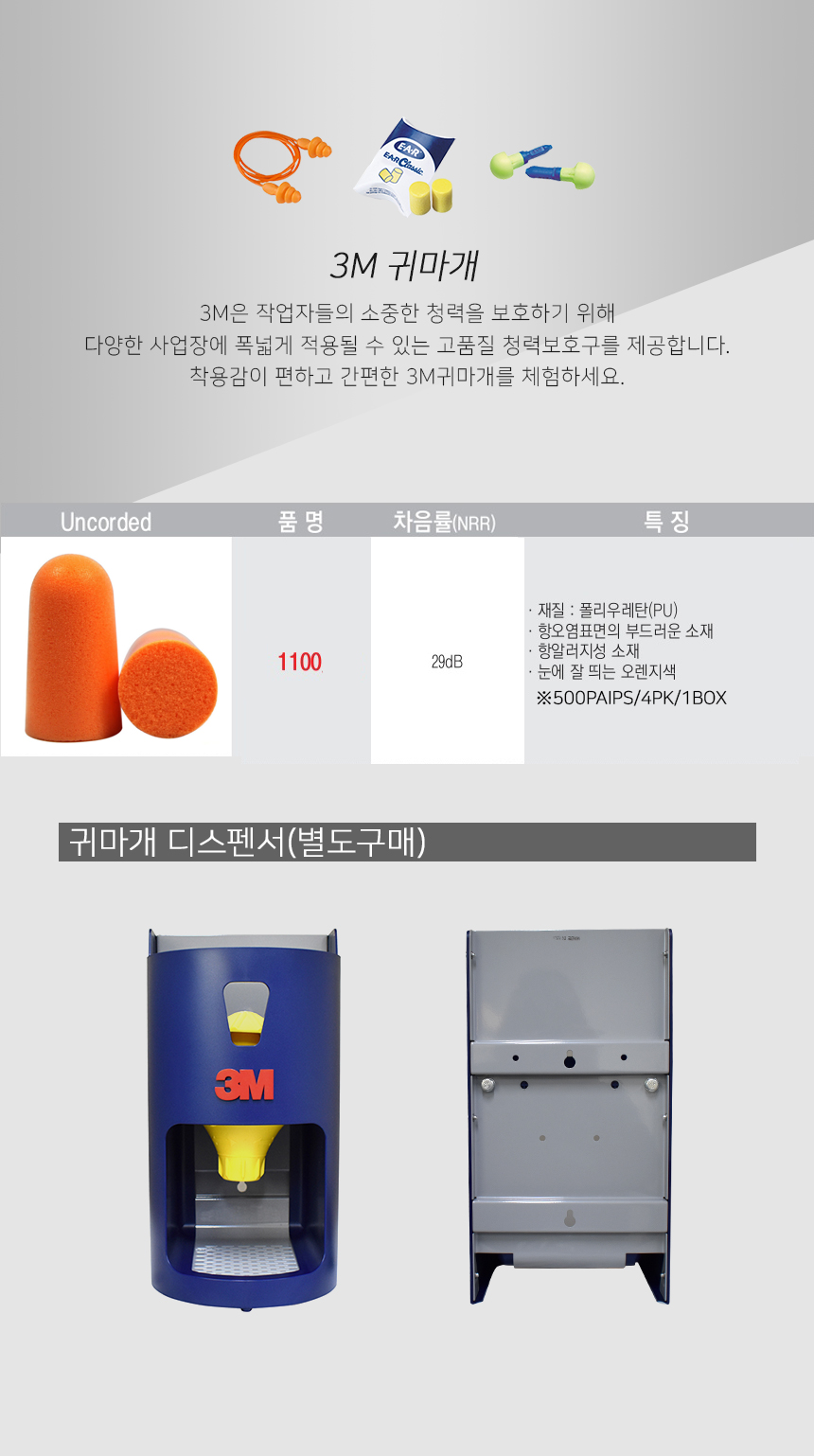 3M 1100 귀마개 디스펜서 리필통 원터치 리필 소음귀마개 청력보호구