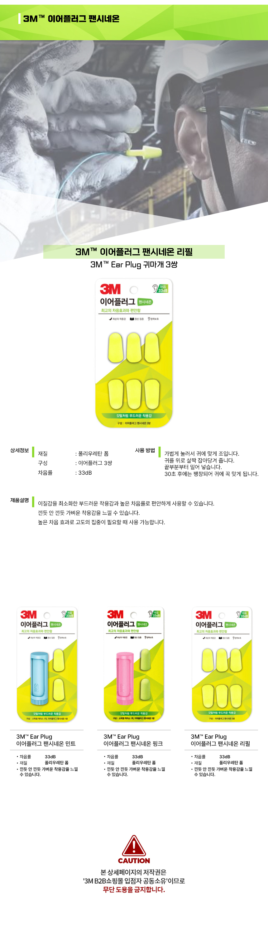 3M 이어플러그 팬시네온 리필 3M귀마개 청력보호 귀마개